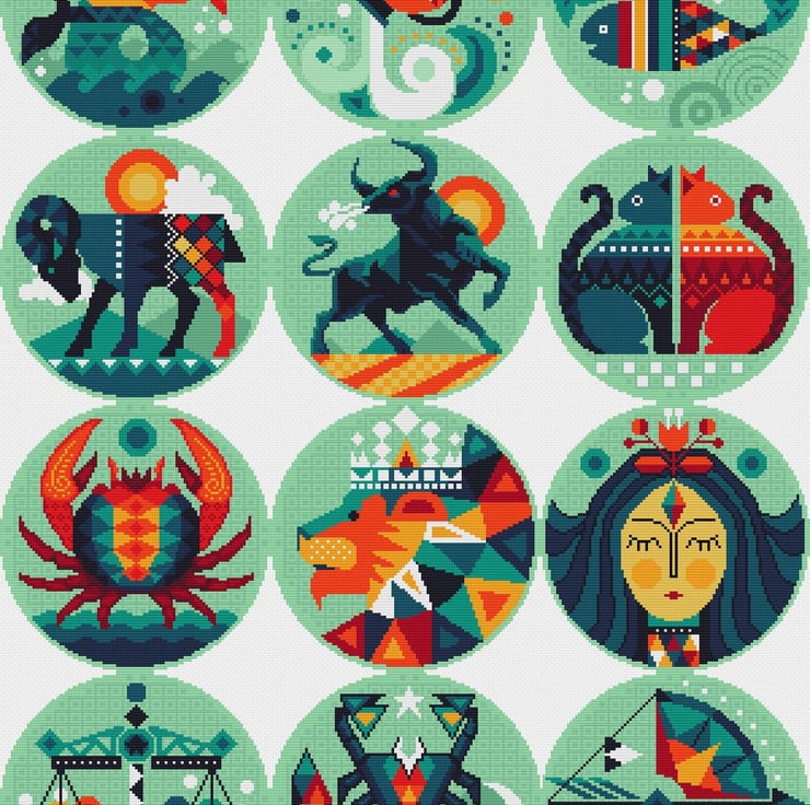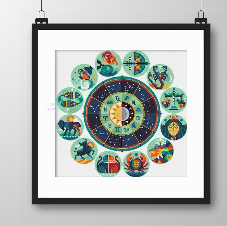 ALL SEPARATE CHARTS INCLUDED / ALL THE STAR SIGNS IN THE SERIES PLUS CELESTIAL CENTRE - Astrological Horoscope - Star sign cross stitch/tapestry chart Instant download by Vivienne Powers in the modern Scandinavian style. This is a monster of a chart, please see the finished sizes for this one is a bit of a challenge!