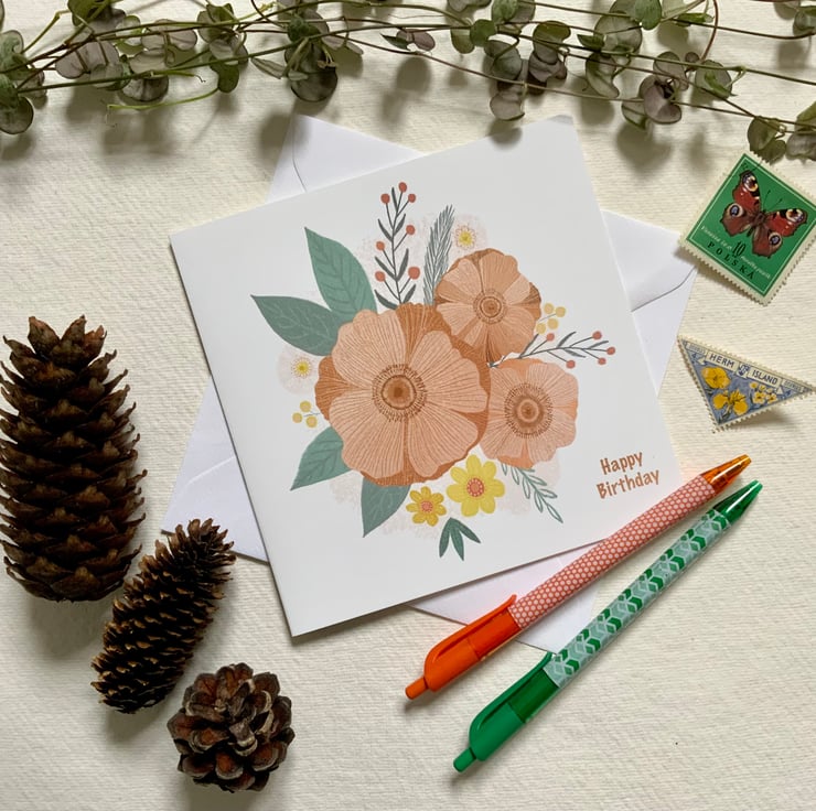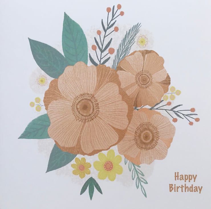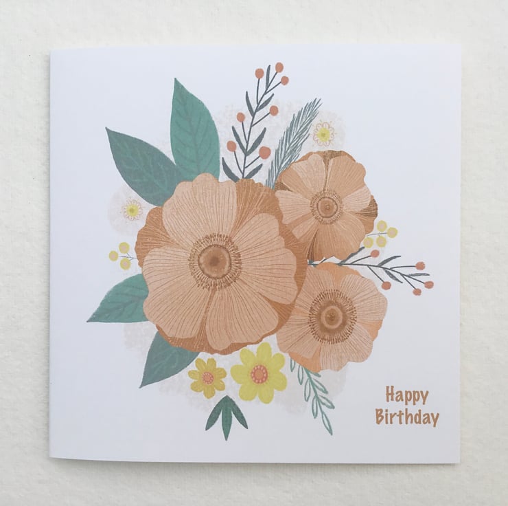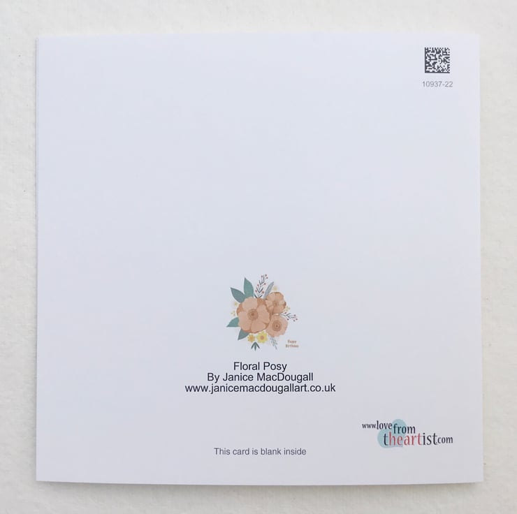 This is a blank greetings card, made from one of my original paintings, it measures 14.5x14.5cm and comes with an envelope. It’s a very pretty birthday card with a floral motif in pastel shades.