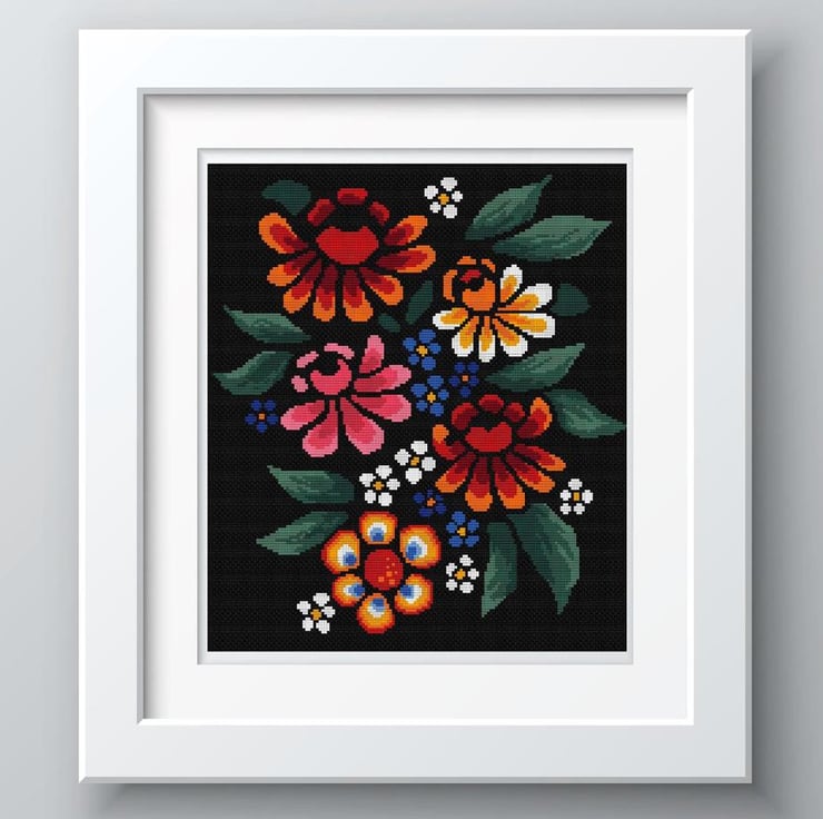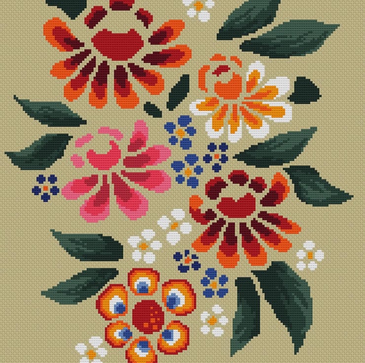 Mosaic Flowers cross stitch tapestry chart, traditional with a modern touch.