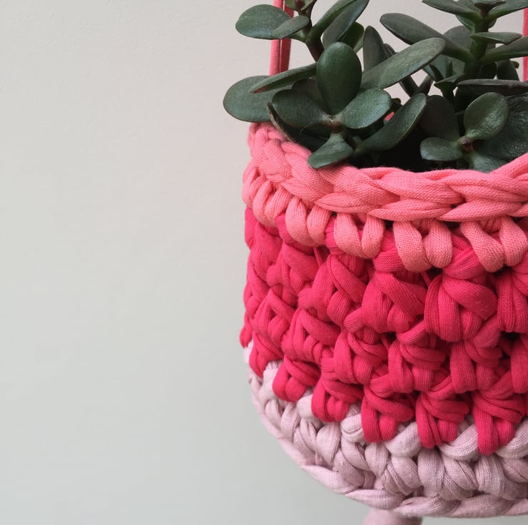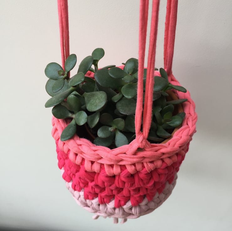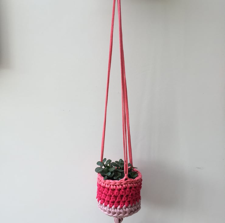 Crochet hanging planter - three-tone pink - free UK shipping