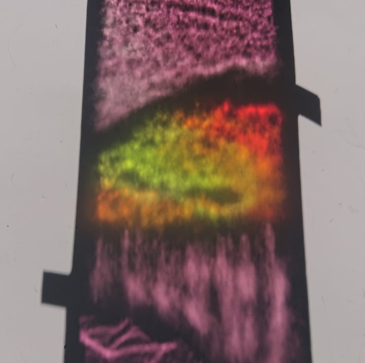 I have allowed some of the horizontal lead lines to protrude through the edge making it an unusual and interesting piece.