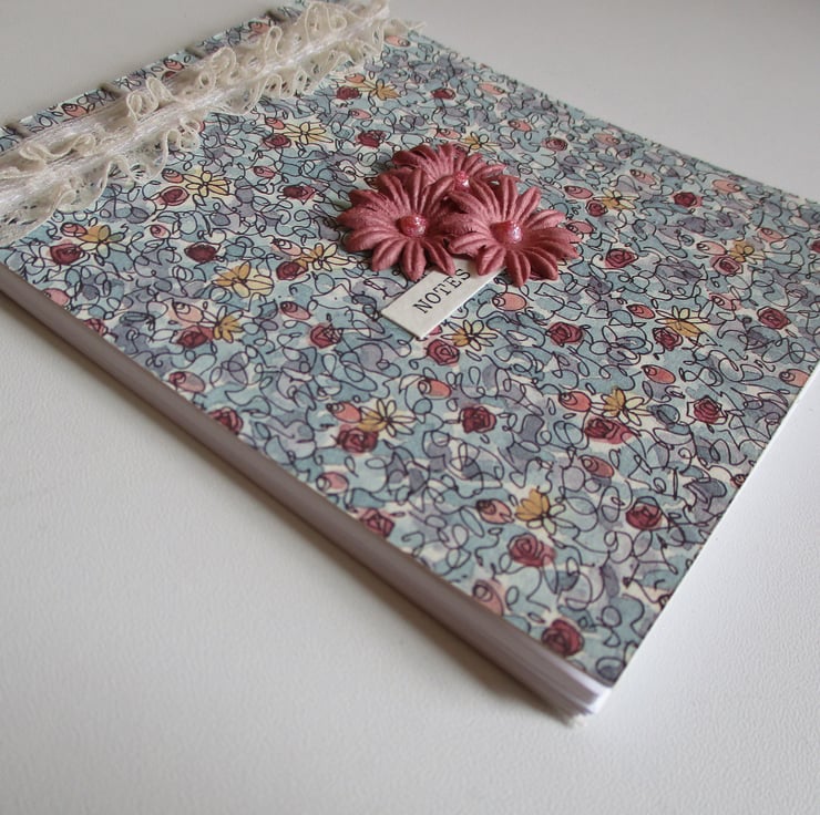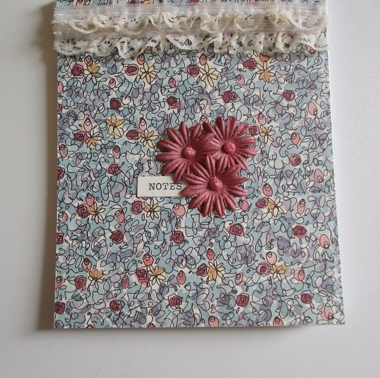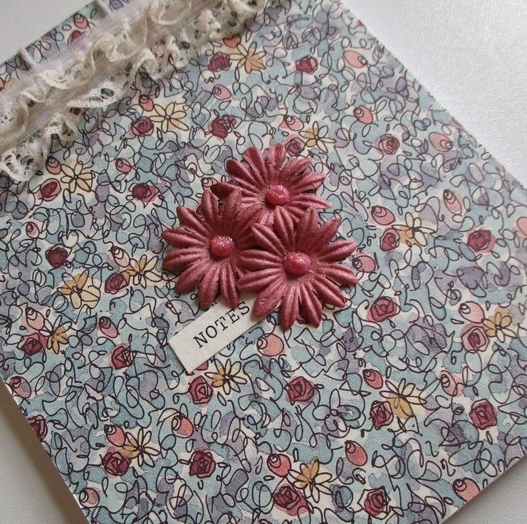Lacy Floral Shabby Chic Style Notebook - Notepad measuring approx 105 x 130 mm