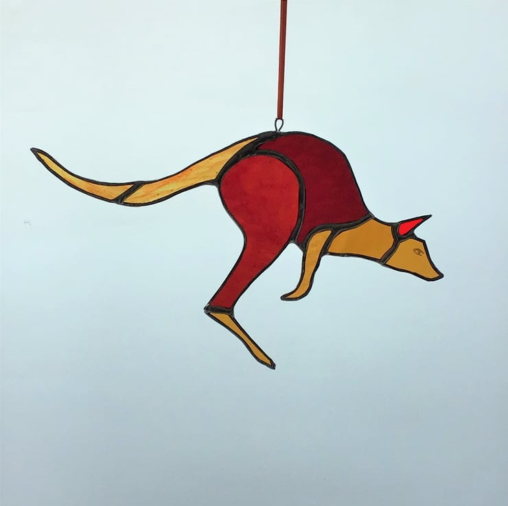 K is for Kangaroo! This is the eleventh animal in my 2020 animal alphabet. I've made various glass animals over recent years but now I've set myself the challenge of creating a whole alphabet of stained glass animal hangings. Some of the letters have been easier than others, but luckily it wasn't hard to find an interesting animal to make for K!
