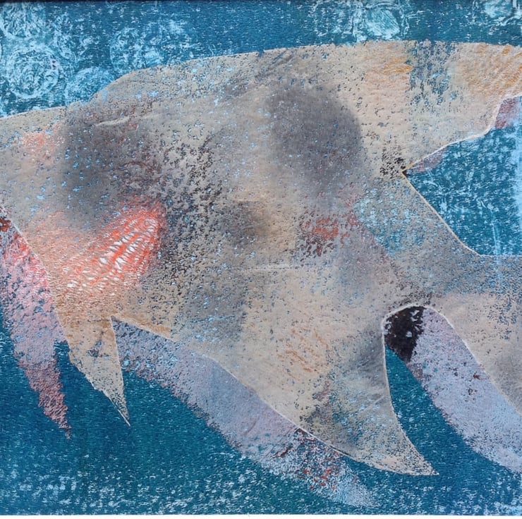 To experiment with printing on the gelatin plate I bought, and was inspired by aquarium scenes.