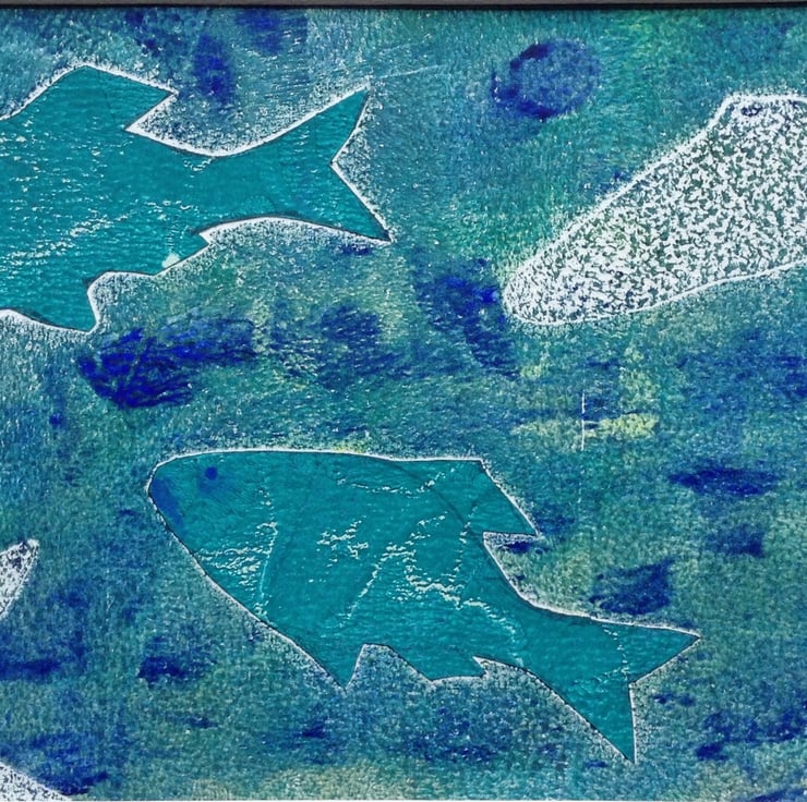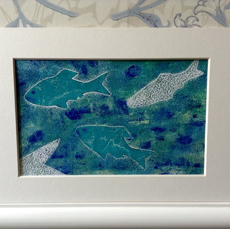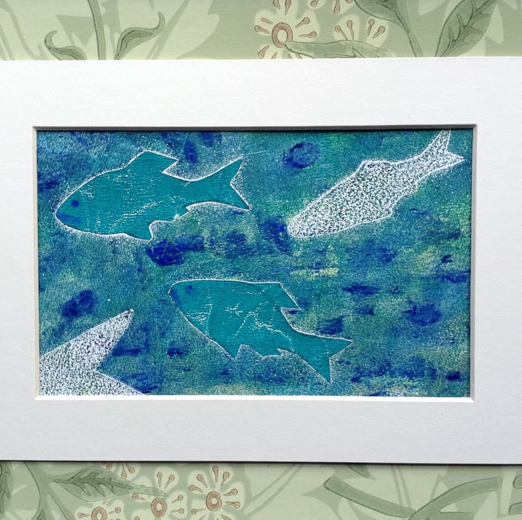 I was experimenting with a commercially made gelatin plate and was inspired by fish.