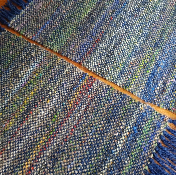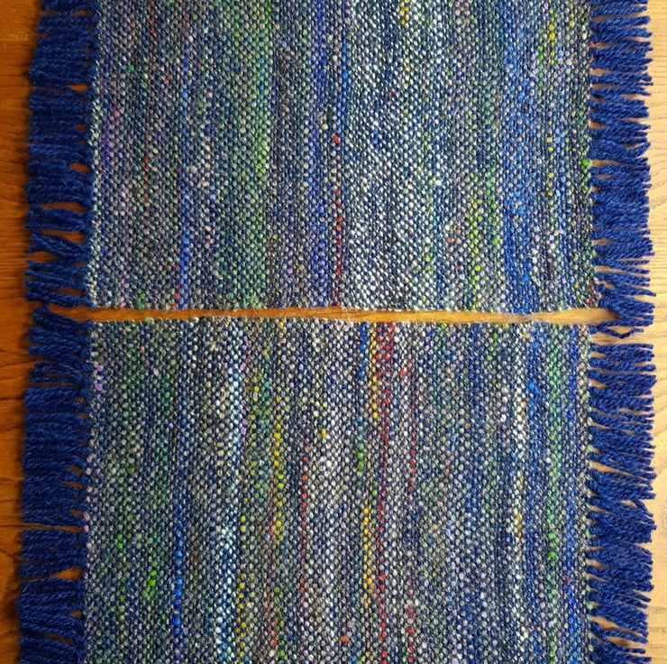 For years I have collected the fibres that have been left at the end of workshops with the idea that I would use them at some point for something! I prepared the fibre by first carding (combing) it all before then spinning it to produce a beautiful yarn. This yarn was used within the weft to weave with before the placemats were then washed and ironed. This has resulted in a series of placemats in 5 colourways.