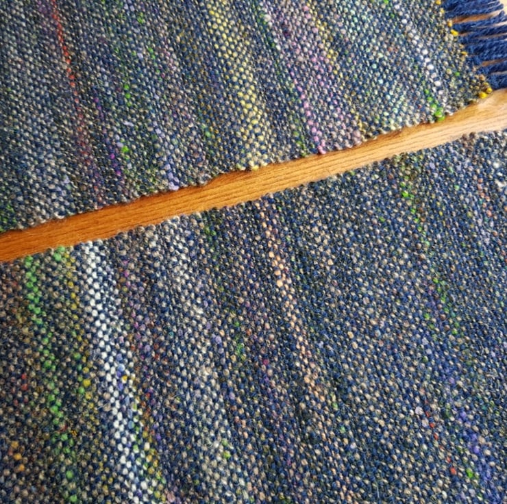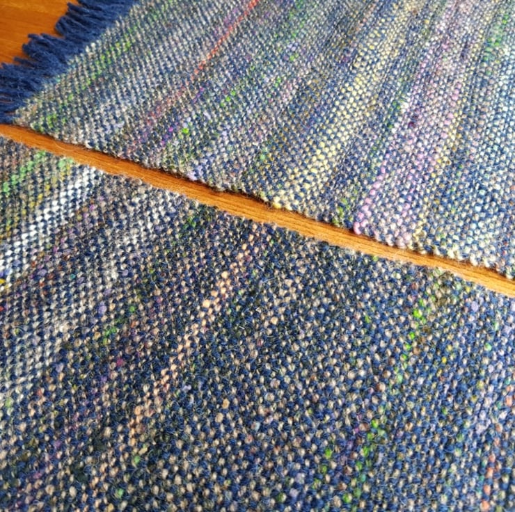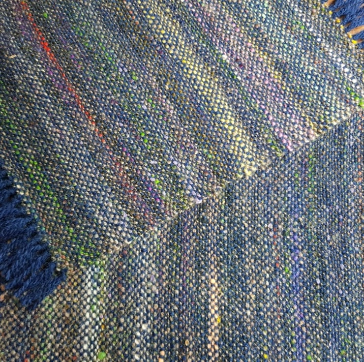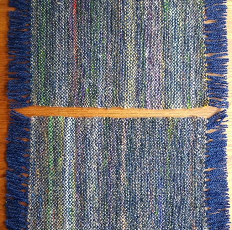 For years I have collected the fibres that have been left at the end of workshops with the idea that I would use them at some point for something! I prepared the fibre by first carding (combing) it all before then spinning it to produce a beautiful yarn. This yarn was used within the weft to weave with before the placemats are then washed and ironed. This has resulted in a series of placemats in 5 colourways.