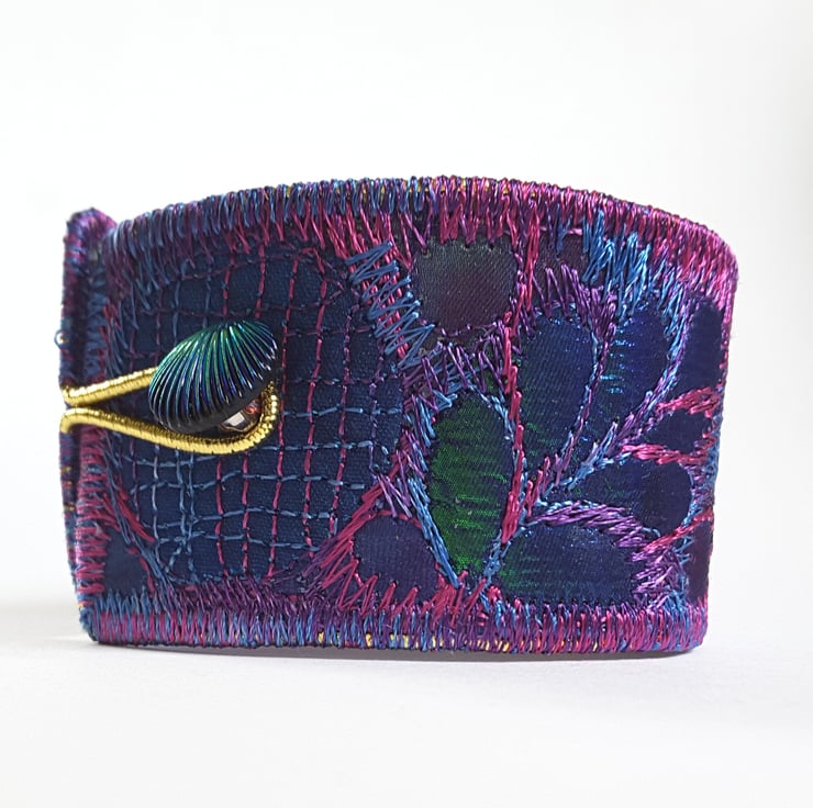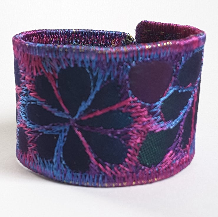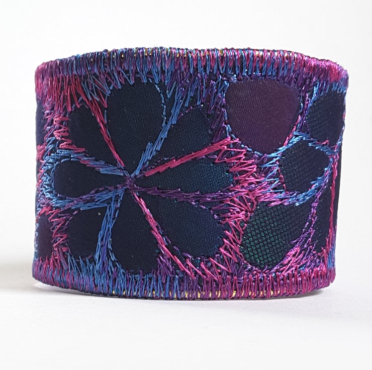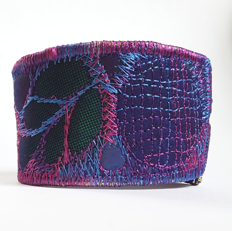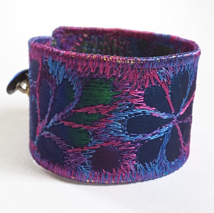 This is a handmade machine stitched fabric Stiched Silk Cuff or bracelet.