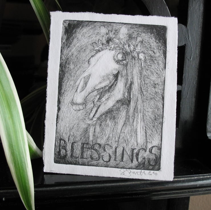 This little print is part of a series of paintings and prints exploring old customs and folklore of Britain, rendered in a slightly spooky folk-horror way.