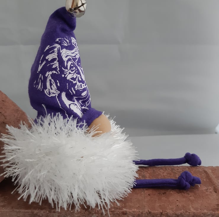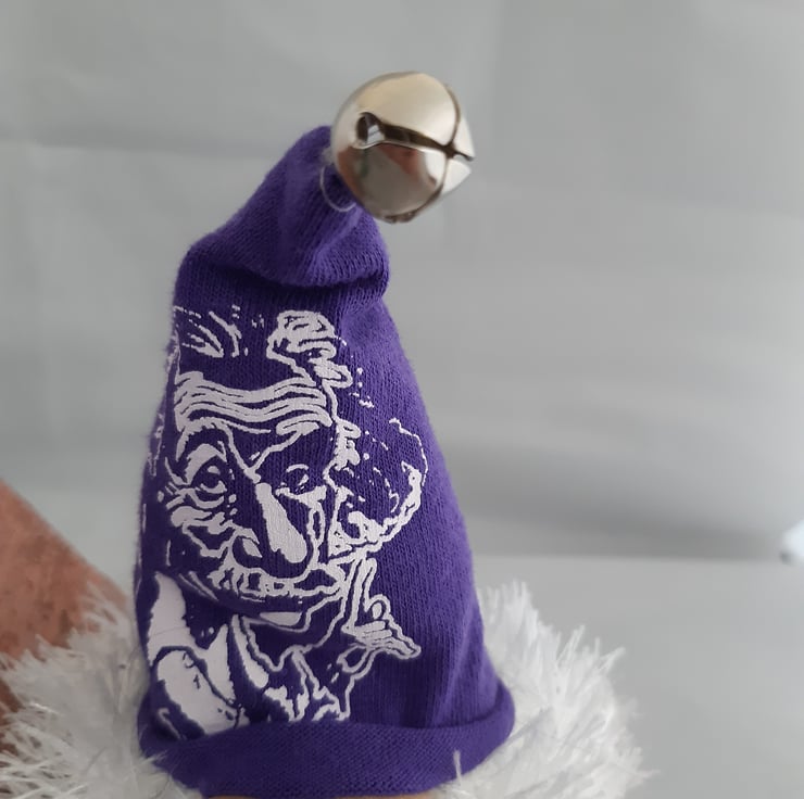 This charming, hand-stitched gnome is a truly one-of-a-kind creation, made with love from upcycled fabrics. The body and hat are crafted from repurposed T-shirts, while the nose is made from upcycled tights, giving each gnome a sustainable, eco-friendly touch.