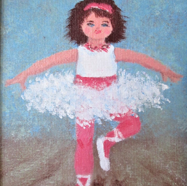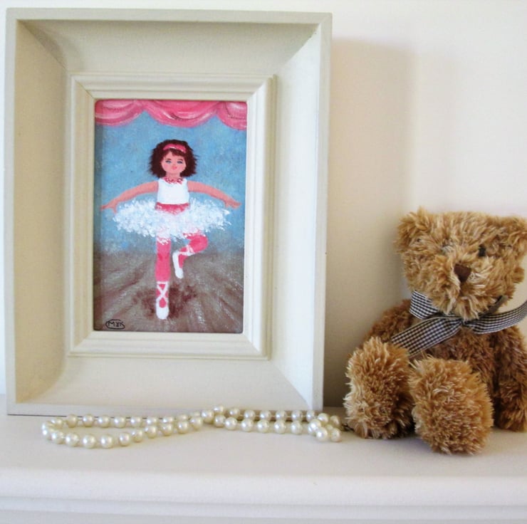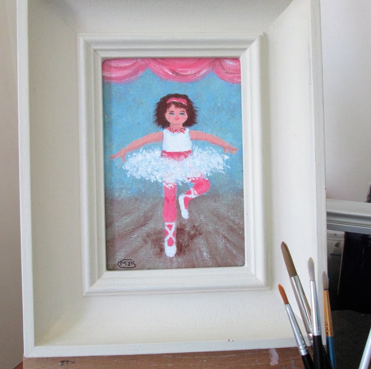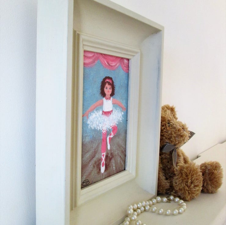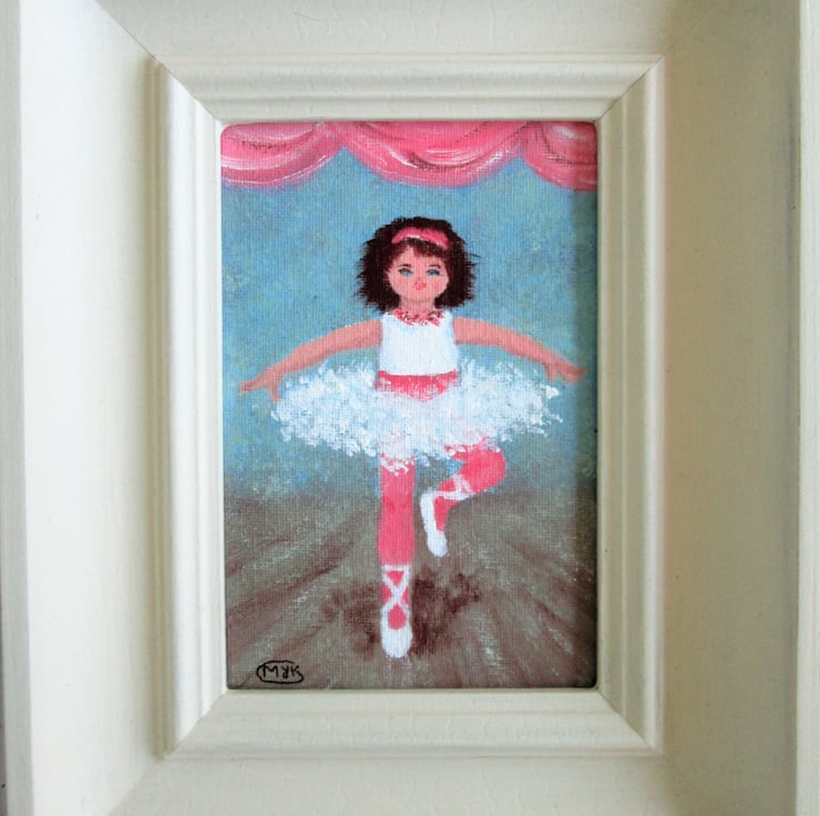 Little Ballerina Centre Stage. Original framed acrylic painting