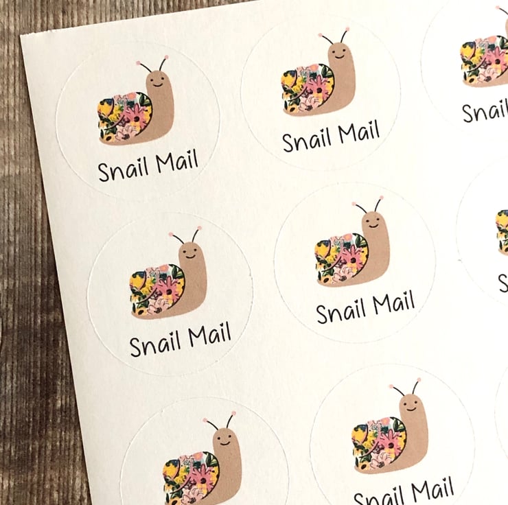 Sheet of super cute circle shaped “snail mail stickers”