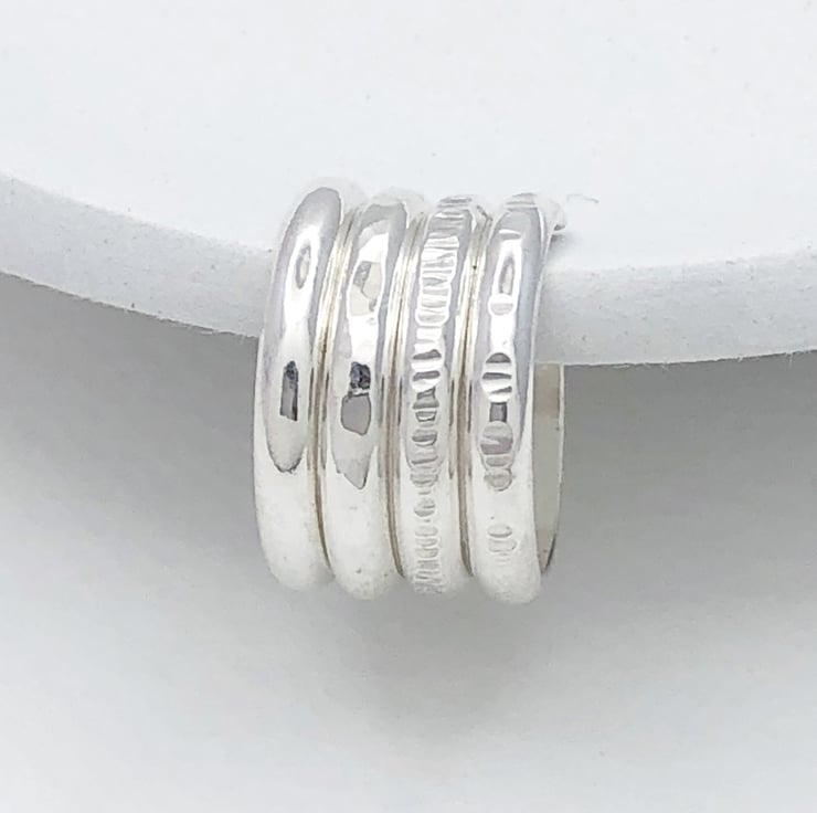 These Sterling Silver ear cuffs have been textured with my special hammers. The little hammer marks catch the light beautifully.