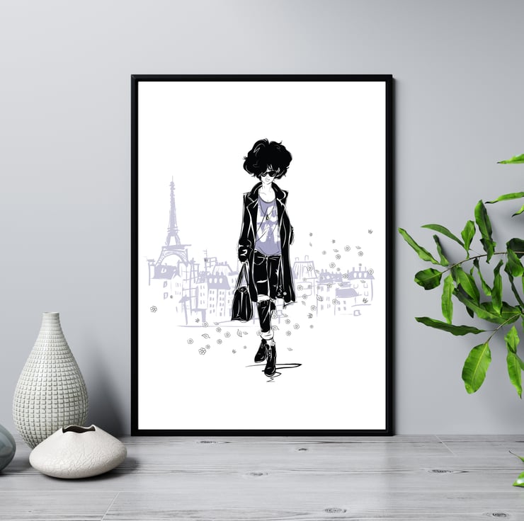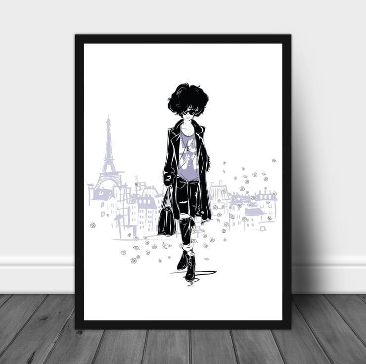 Fashion wall print, Fashion woman wall art, Fashion girl in Paris, gift