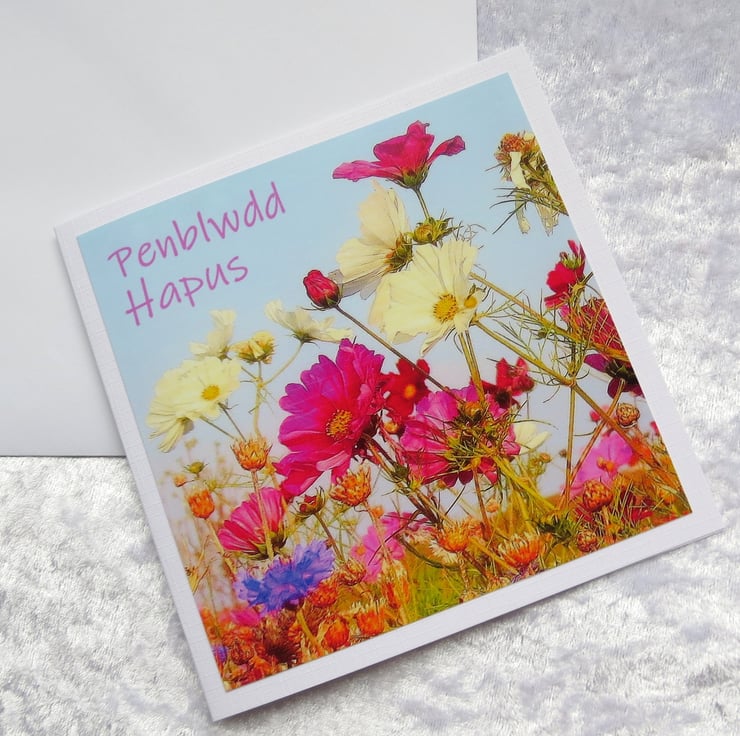 This welsh birthday card measures 15cm x 15cm.