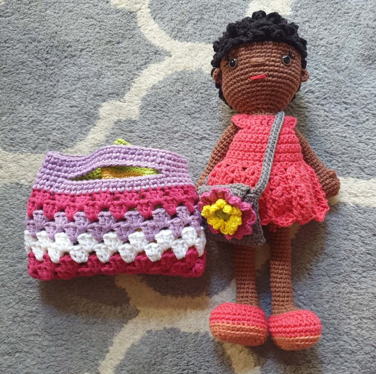 This lovable crochet doll is made in 100% cotton and stuffed with polyester filling and fitted with brown safety eyes.