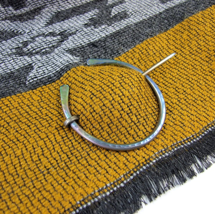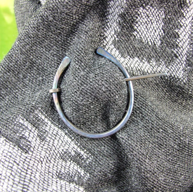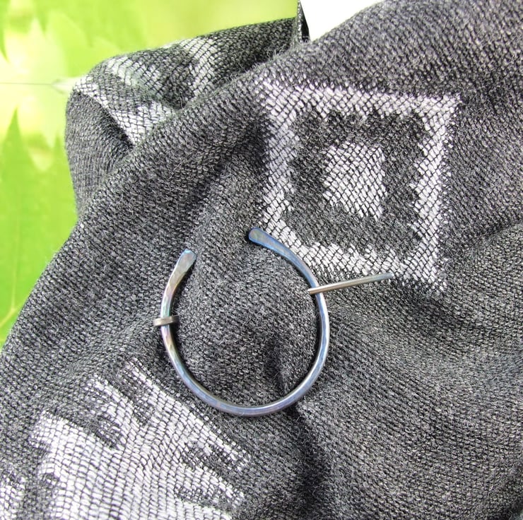 Hand forged hammered Titanium Celtic Pennanular Brooch for Open Weave or Knit Shawl, Scarf, Wrap or Cardigan.