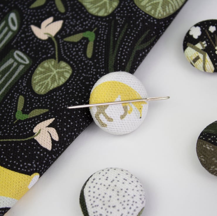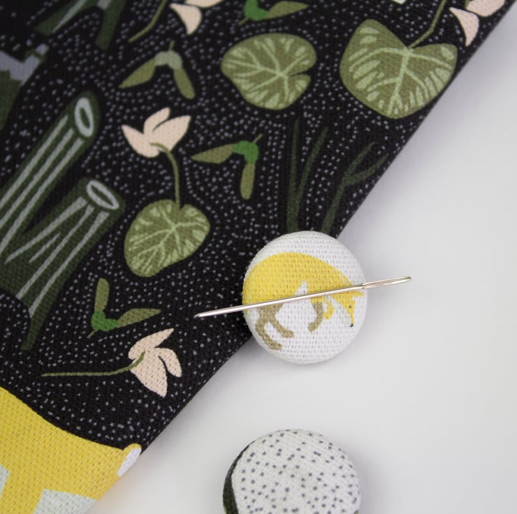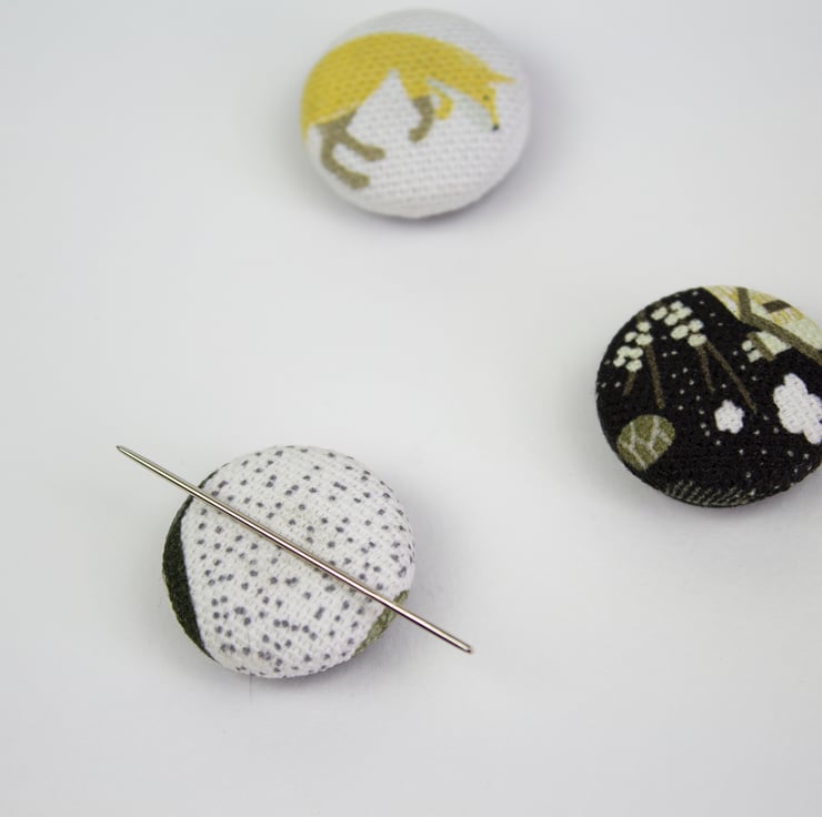 Cute as a button these needle minders are handmade from our illustrated fabrics. These pretty little fabric covered magnets match all our other items and look amazing with our embroidery kits and other craft essentials. This needle minder features a tiny fox that features on our fabric. They have a strong magnet and keep your needle safe when crafting, no more hunting around for lost needles.
