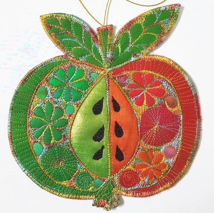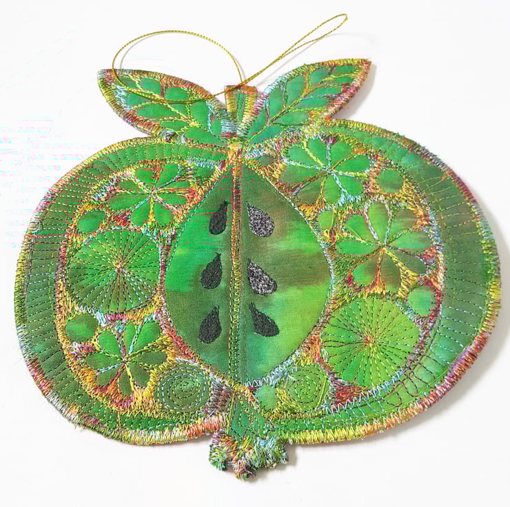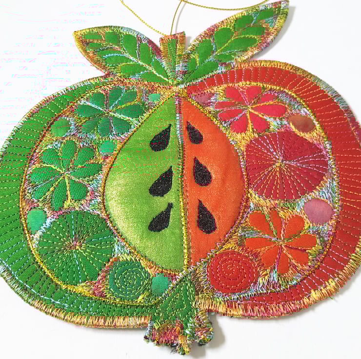 Made from layers of fabric including hand dyed Egyptian cotton and silk fabrics using the free machine embroidery style of sewing