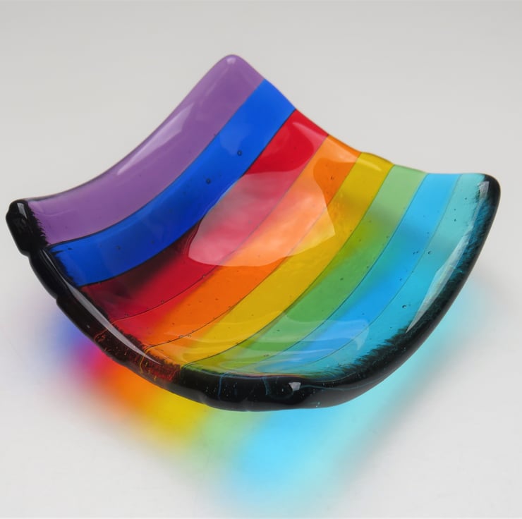 This is a beautifully bright and cheerful rainbow striped dish ideal to brighten up any space and cast colourful shadows.