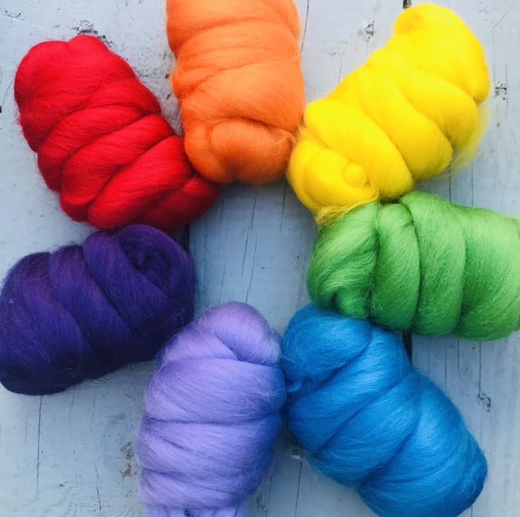 Set of 7 colours of felting wools, perfect for wet or needle felting. 10grams of each colour totalling 70grams. Merino wool, soft and great felting properties.