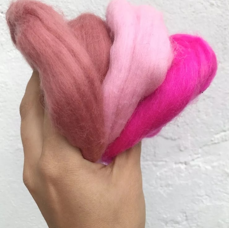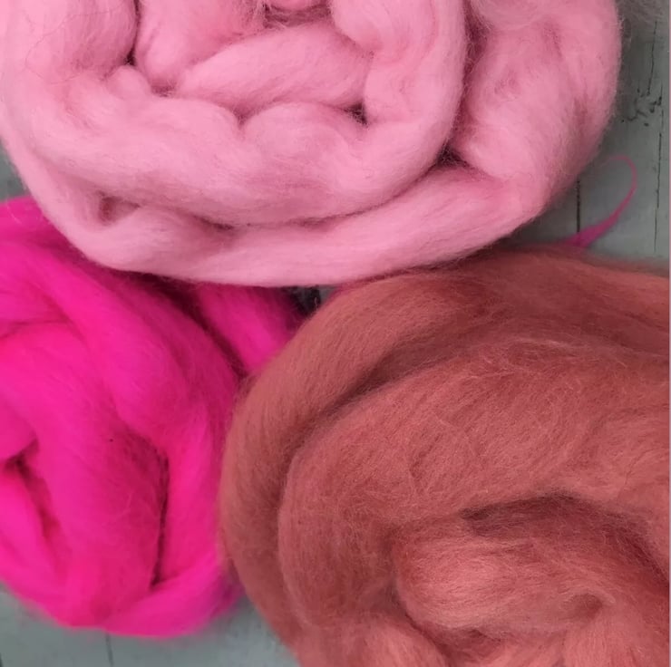 Set of pink merino wools, 15 grams of each colour totalling 45grams. Cerise, baby pink and dusty pink. Soft merino wool perfection t for spinning, needle felting and wet felting