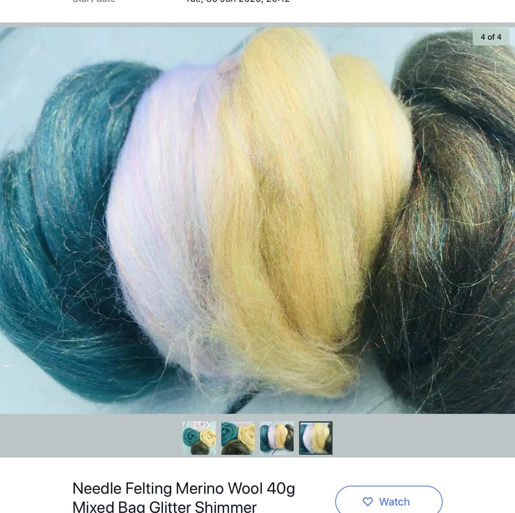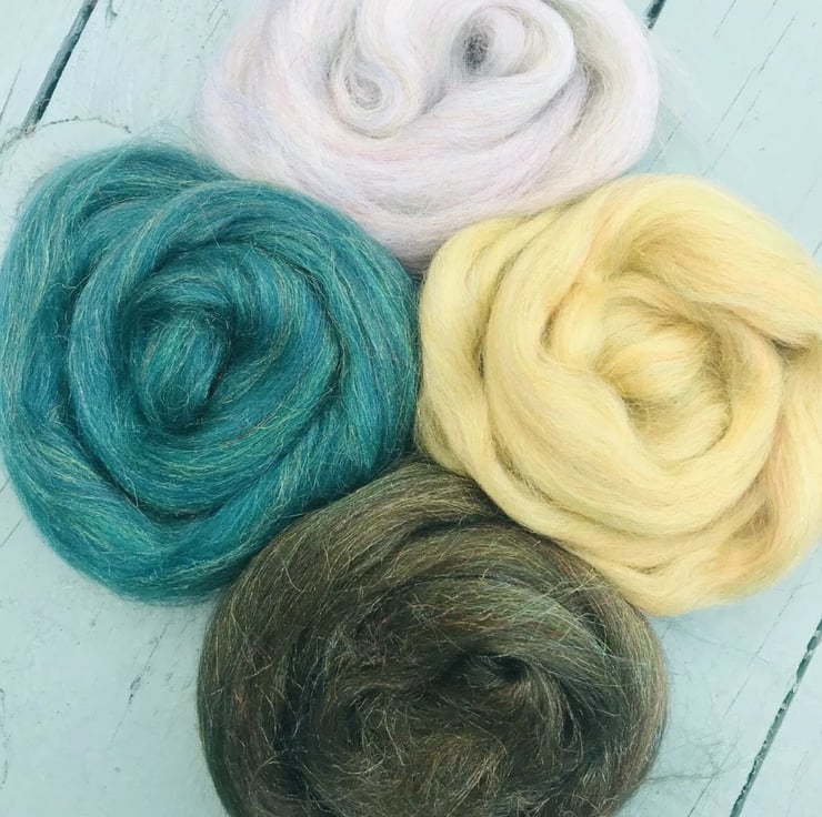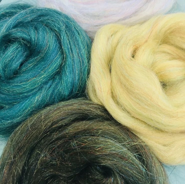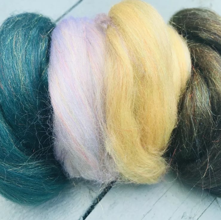 Bundle of merino glitter felting wool, needle felting and wet felting effect fibres, luscious glittery wools for felting and spinning. Set of four colours, 10 grams of each totalling 40 grams.