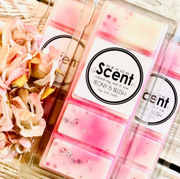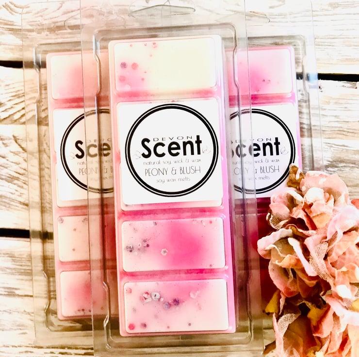 Our highly fragranced Peony & Blush Snap Bar Wax Melt have a similar scent to Peony & Blush Suede by JoMal.