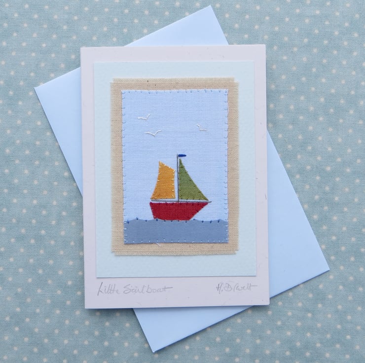 This is a return to one of my earliest designs from over twenty years ago! I love watching sailing boats on a hot afternoon by the sea, and enjoy the tinkling sounds of their rigging even when they are at anchor. Simple shapes and colours combine in this design to make an an iconic image of peaceful seaside days.