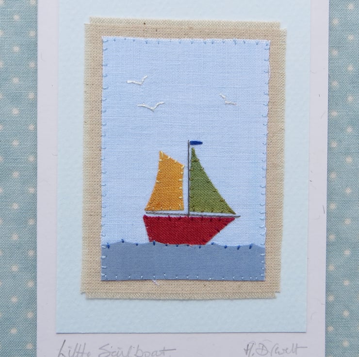 This is a hand-stitched miniature textile mounted onto greeting card - a gift in itself to keep as well as a card in which to write your messag I dye recycled cotton fabric to achieve subtle and interesting colours, which I think are much nicer that factory dyed materials and add embroidered details to complete the design.
