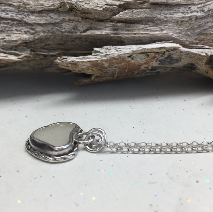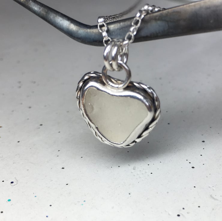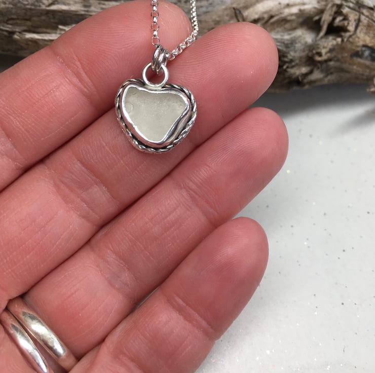 This beautiful piece of heart shaped sea glass was found and collected from a beach in North Wales and handcrafted into this pendant using fine and sterling silver