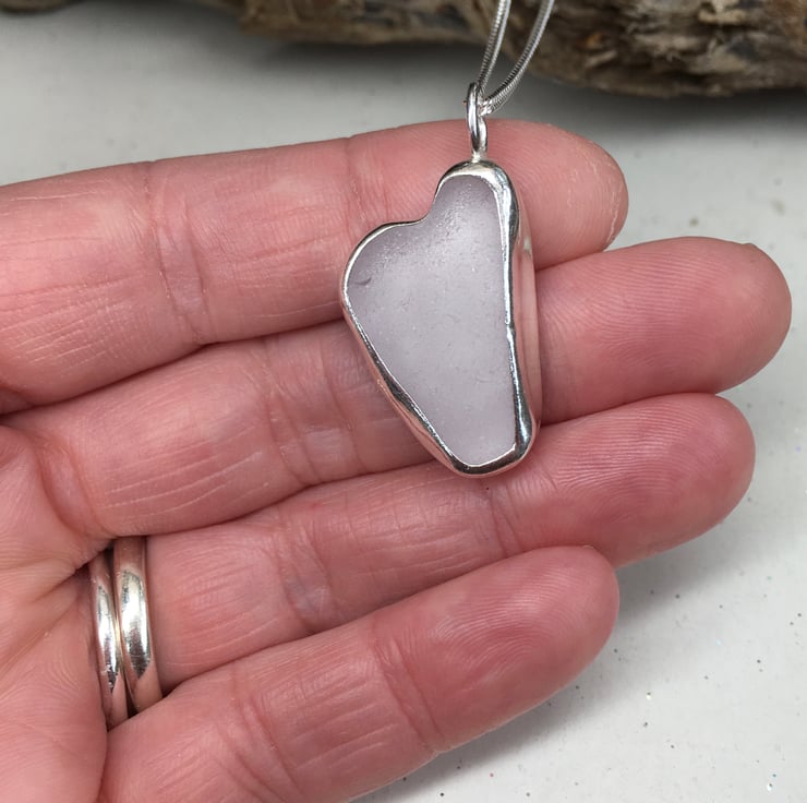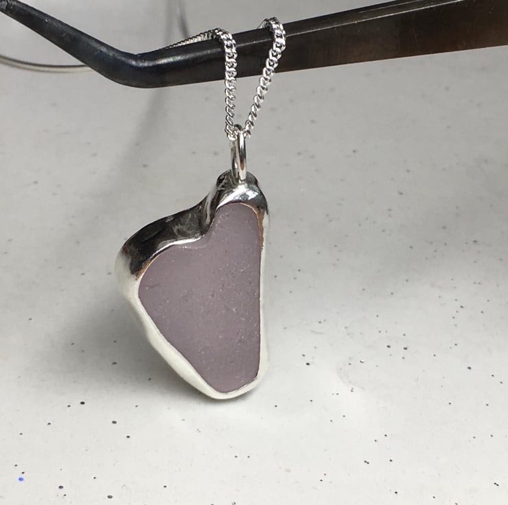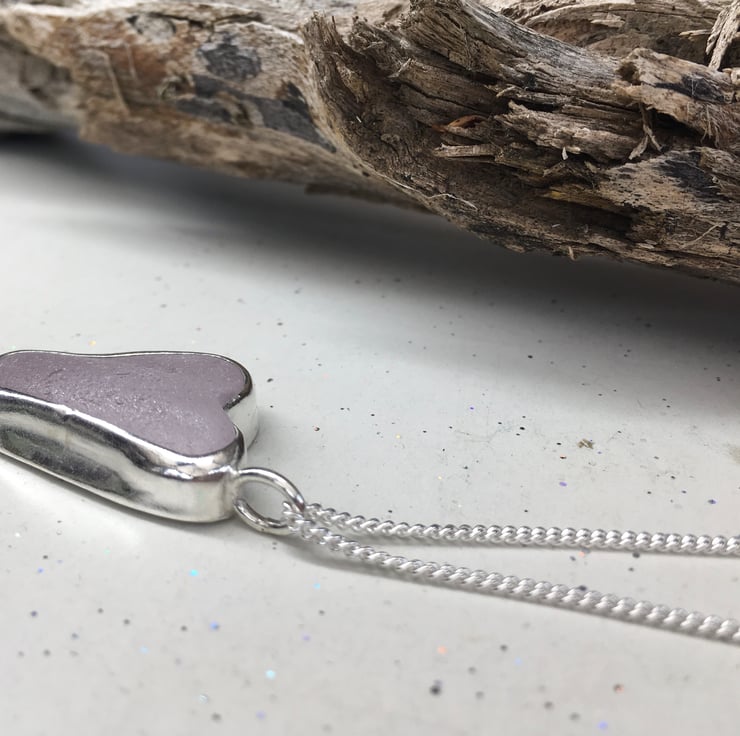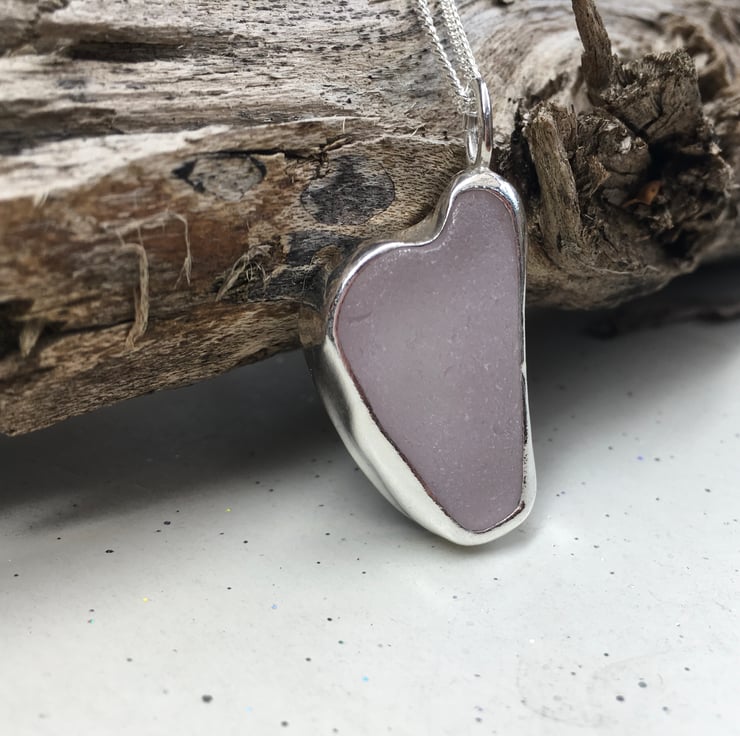 This stunning piece of lavender heart shaped sea glass was found and collected from my local beach in North Wales and handcrafted into this pendant using fine and sterling silver