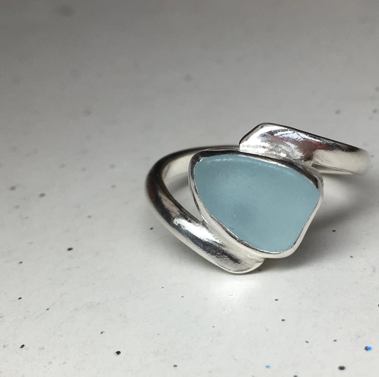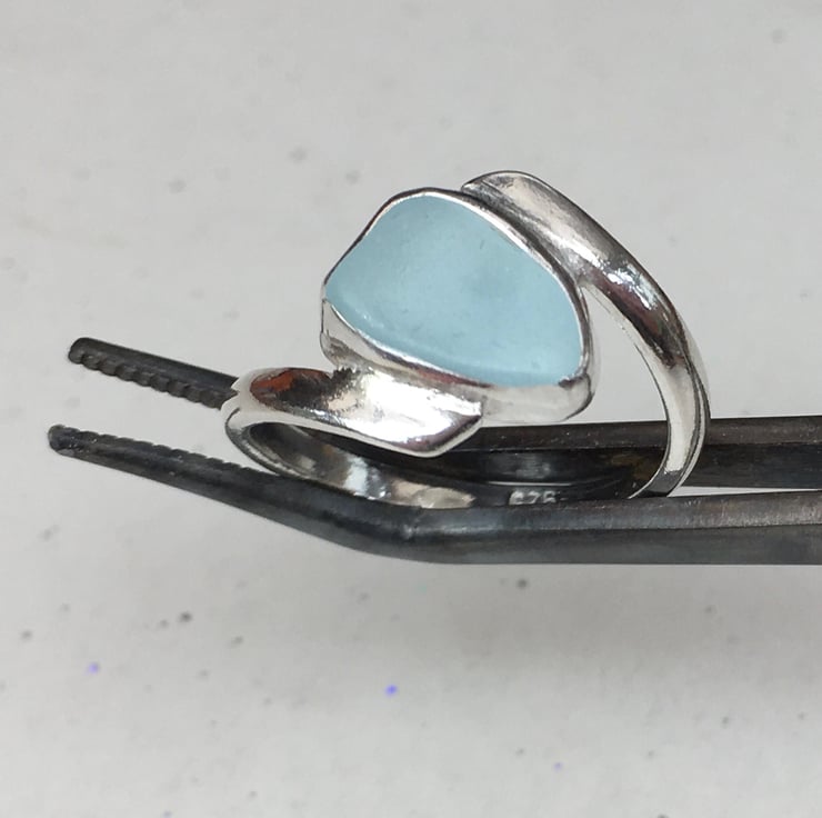 This stunning piece of seafoam blue sea glass was found and collected from my local beach in North Wales and handcrafted into this lovely ring using fine and sterling silver
