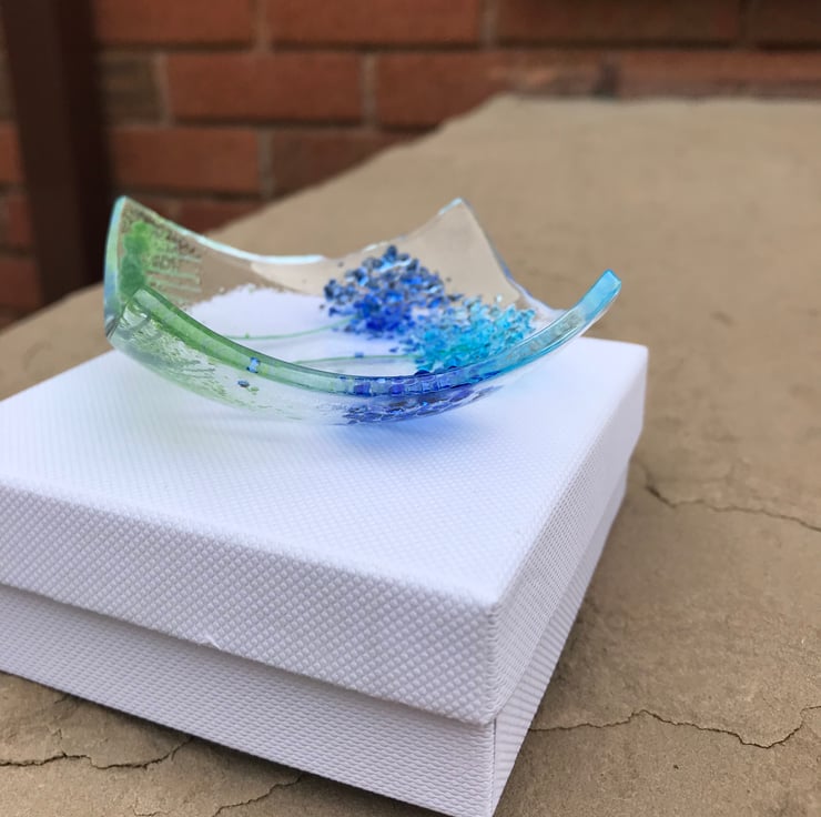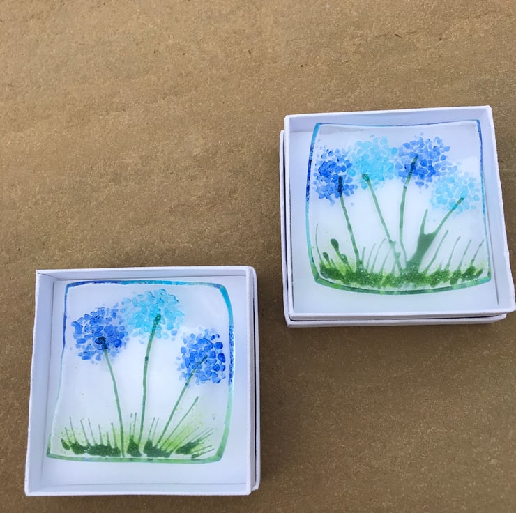 Pretty 3.5 inch trinket dish in my allium design . Presented in a quality white gift box . Perfect small gift . Useful for jewelry , pills or just decorative !