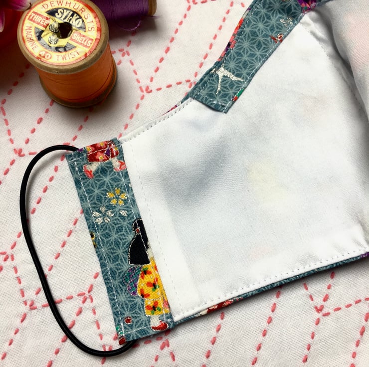Masks should be hand washed in warm soapy water or washed in a delicates bag at 30 or 40 degrees. Gilded fabrics should be ironed on the reverse side. Elastic should not be ironed.