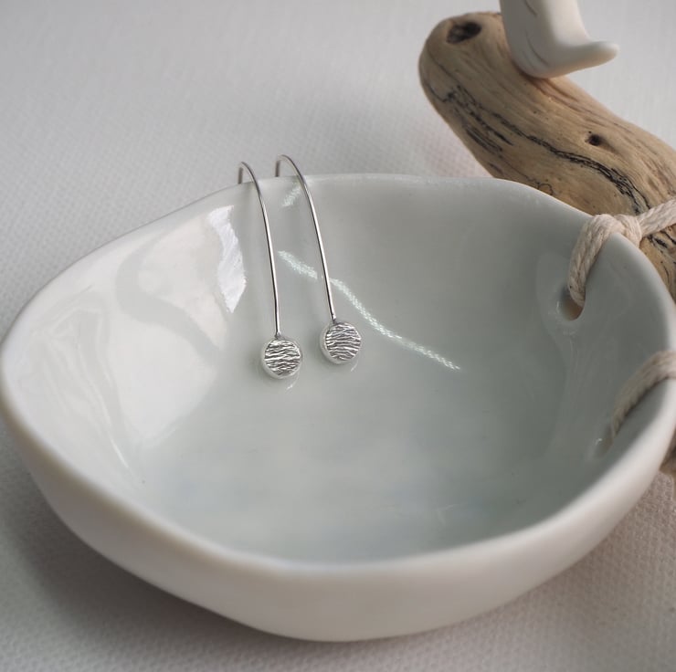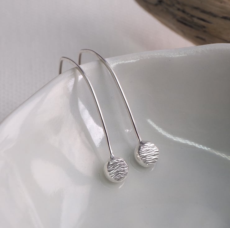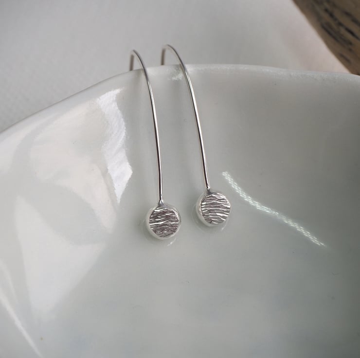 These earrings have a 'shimmer' hammered texture but I also make them with a 'dimpled' hammer texture - see the pebbles section in my shop for further details.