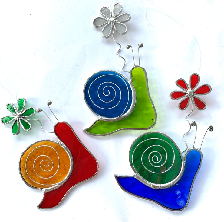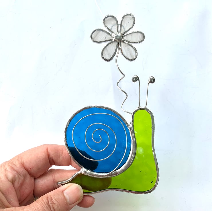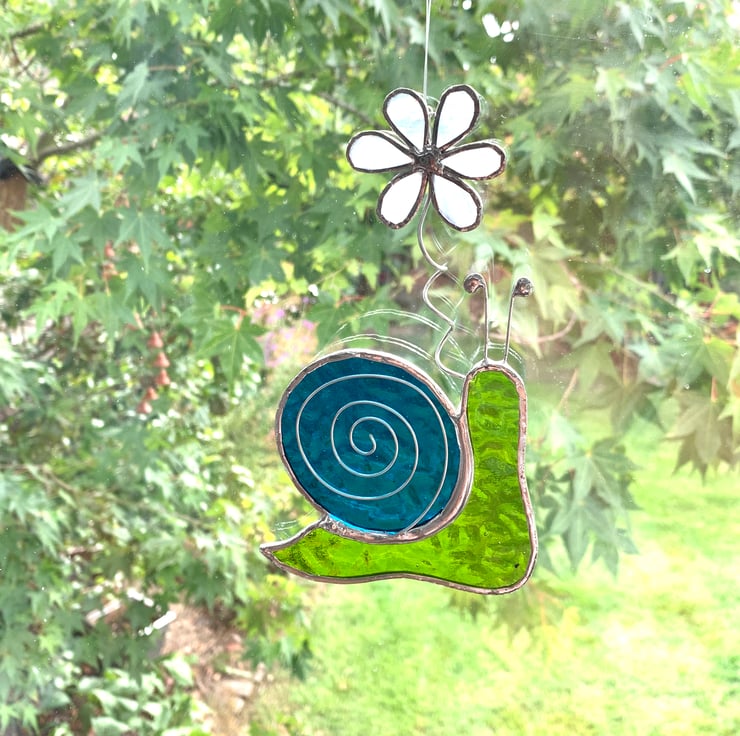 This fun little snail won’t munch your plants, infact carries its own little flower with him.