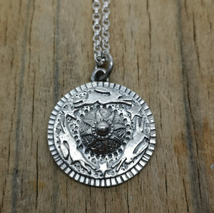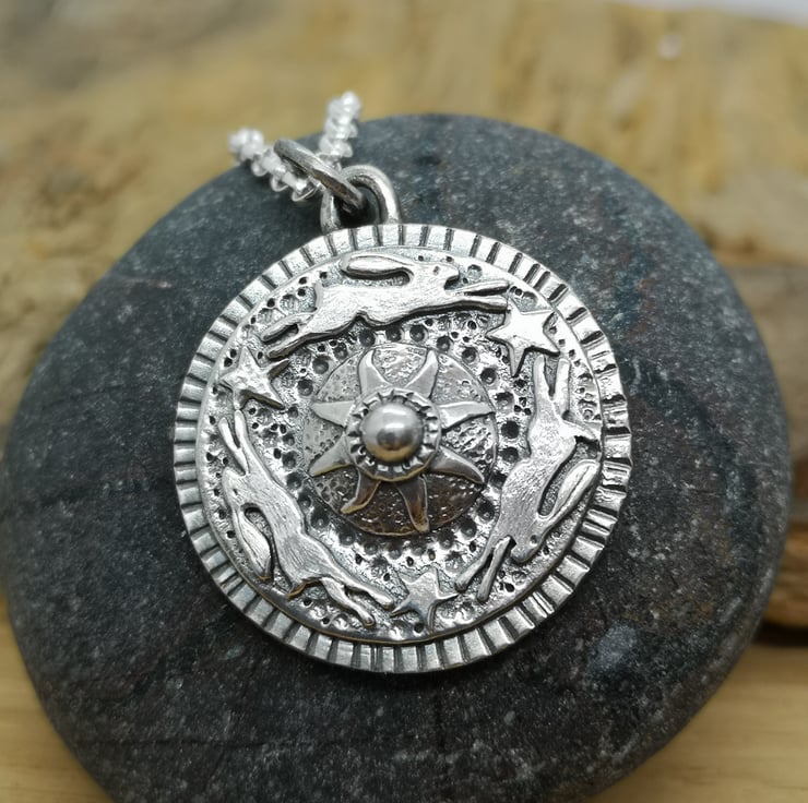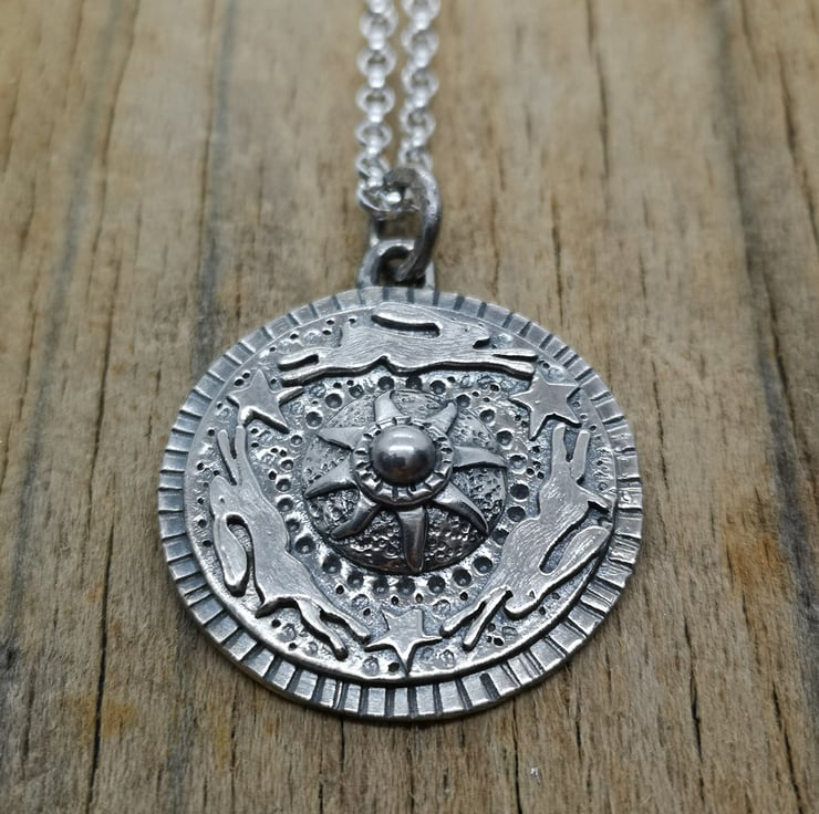 Made using traditional jewellery making techniques, using my jewellers saw, hammer texturing / hand engraving, and carefully soldering everything into place.
