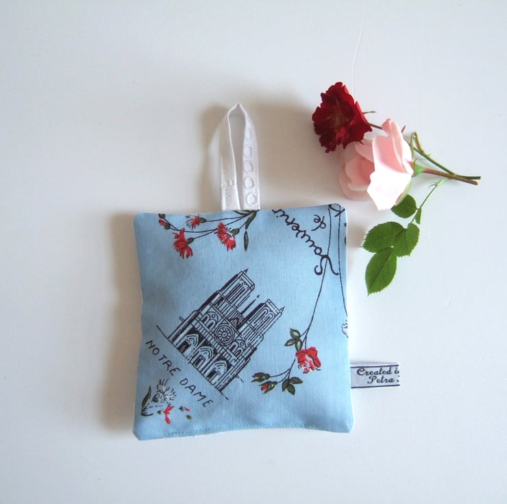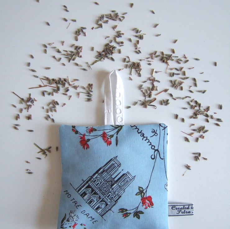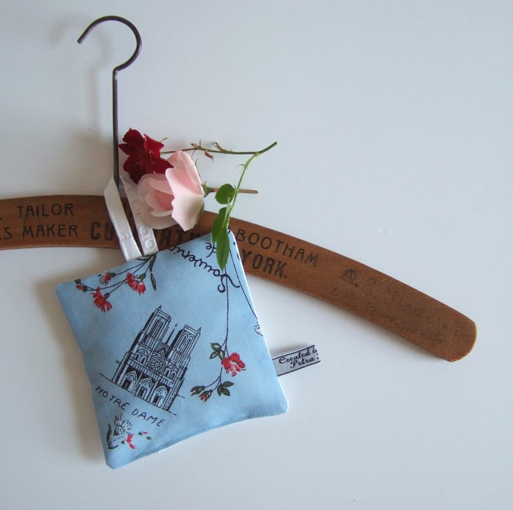 Oooh La La. I like to think that this sweet vintage napkin, with its 1950’s feel and whimsical Notre Dame print, was a souvenir from a weekend in Paris. I have stitched it into little matching lavender bags, with dried Yorkshire lavender. Its the eco friendly way to help you sleep, scent your clothes and drive away nasty moths. Pop this French fancy in a drawer to make your clothes smell extra fresh. This would make a lovely housewarming gift, a present for a vintage fan, or for anyone needing a virtual hug right now.