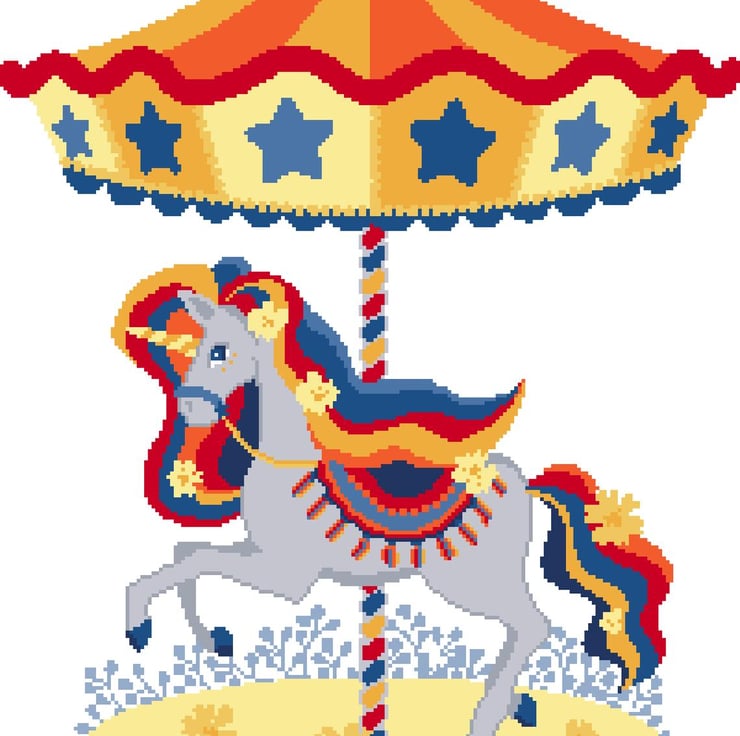 CHILDREN'S SERIES - Colourful Unicorn Carousel Horse - easy simple cross stitch/tapestry chart by Vivienne Powers. Cute unicorn carousel cross stitch and tapestry chart using just 12 colours... And designed to have the least amount of 'fiddly' bits. Please see others in the series.