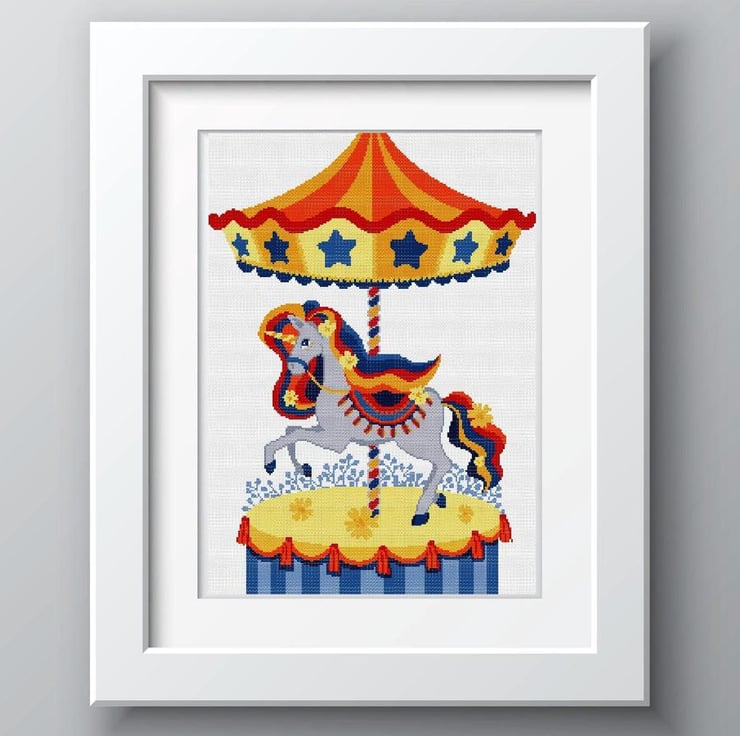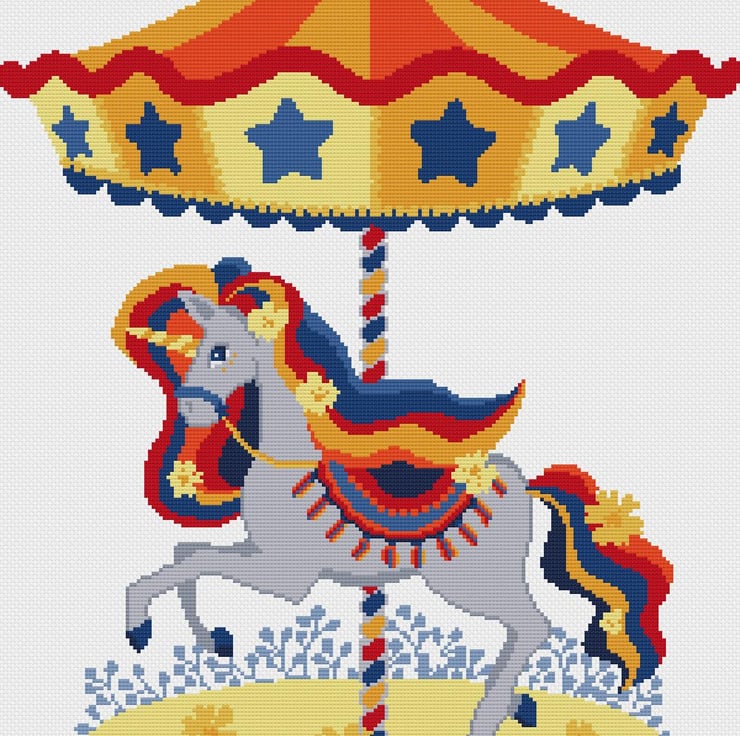 Cross stitch pattern 136 - Colourful Unicorn Carousel Horse - Children's Fun, Bedroom - simple cross stitch/tapestry Instant PDF download chart by Vivsters. No delivery costs - PDF file straight to your inbox. Start stitching straight today!