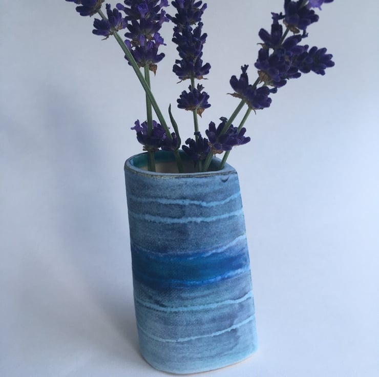 Ideal for a wedding gift, birthday present with a delicate posy of fresh or dried flowers. This small stoneware ceramic vase is both functional and decorative, it will hold water for flowers or herbs having a shiny glaze on the inside.