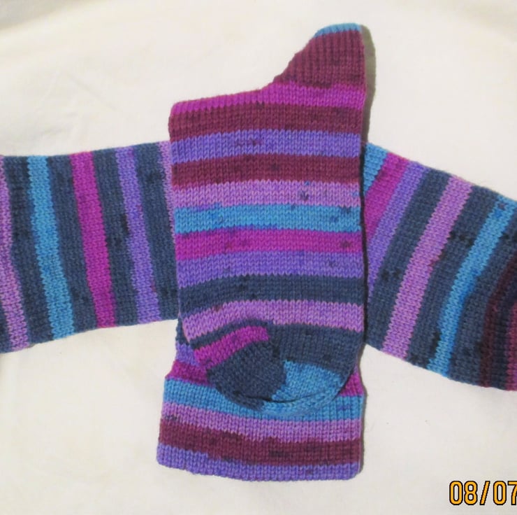 I started making socks as i found it hard to find good quality socks with no seams in the toe. The first pair was fro a vintage pattern from my Granny and when everyone in the family saw them, they all wanted a pair and my market got bigger and bigger. Now when I pop to the shop in the village, I look down at everyone's feet and invariable I will see a pair of socks that I have made. A quality sock from fun yarn !