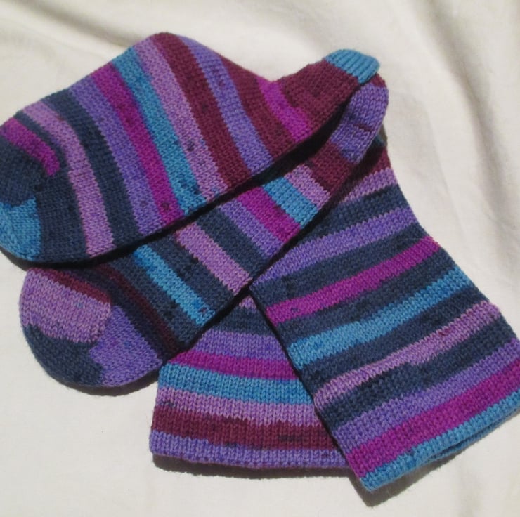 This yarn is such fun to knit as you never know quite how the stripes are going to come out. Great wool socks and the polyamide makes them a little bit tougher.
