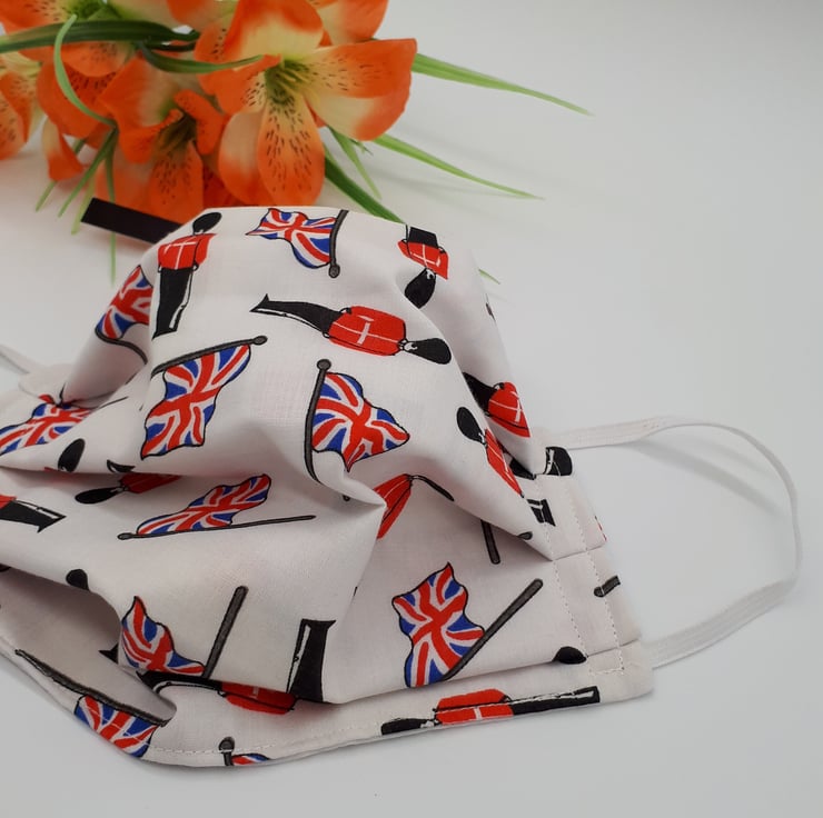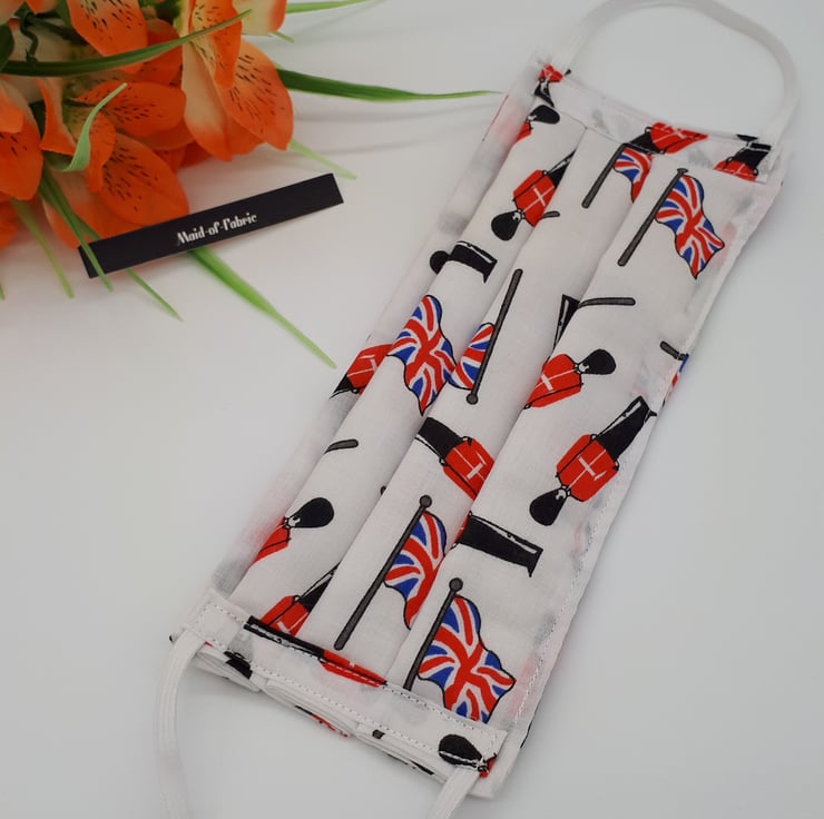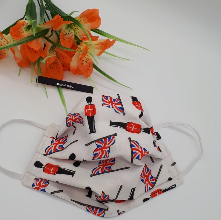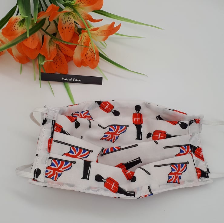 Face mask, large, 3 layer, machine washable in Queens guard fabric.