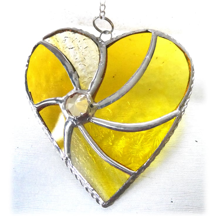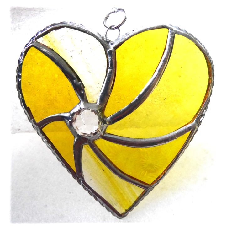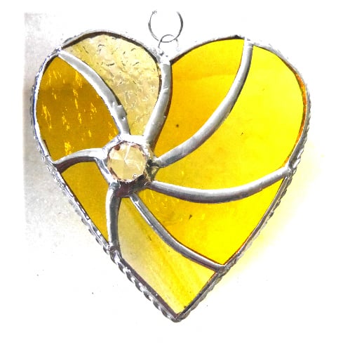 I've made the heart from 7 types and colours of glass, gorgeous yellow textures and I've set them in a swirl round a sparkling crystal.