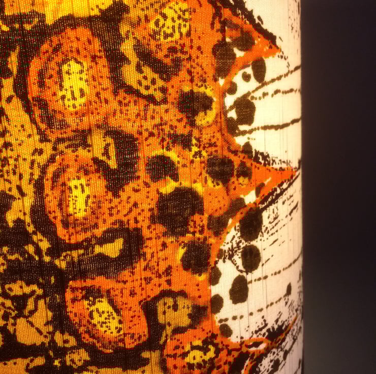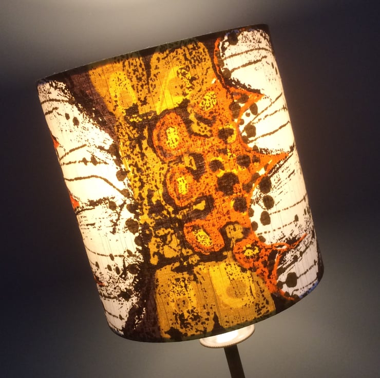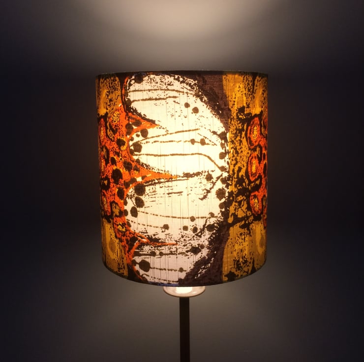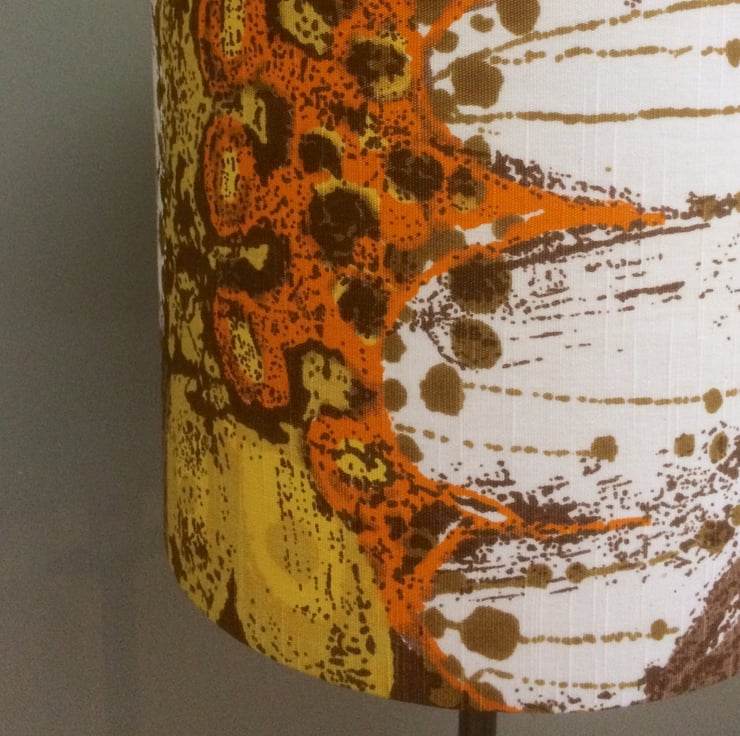 Scandi Mid Century Lagos Lampshade in BORAS Yellow Orange vintage fabric - featuring a fabulous Swedish vintage fabric, Lagos by Saini Salonen for Boras - A bold feature in either a modern country or retro setting.