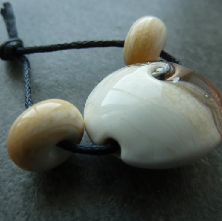 Two lampwork glass spacer beads made with ivory glass.