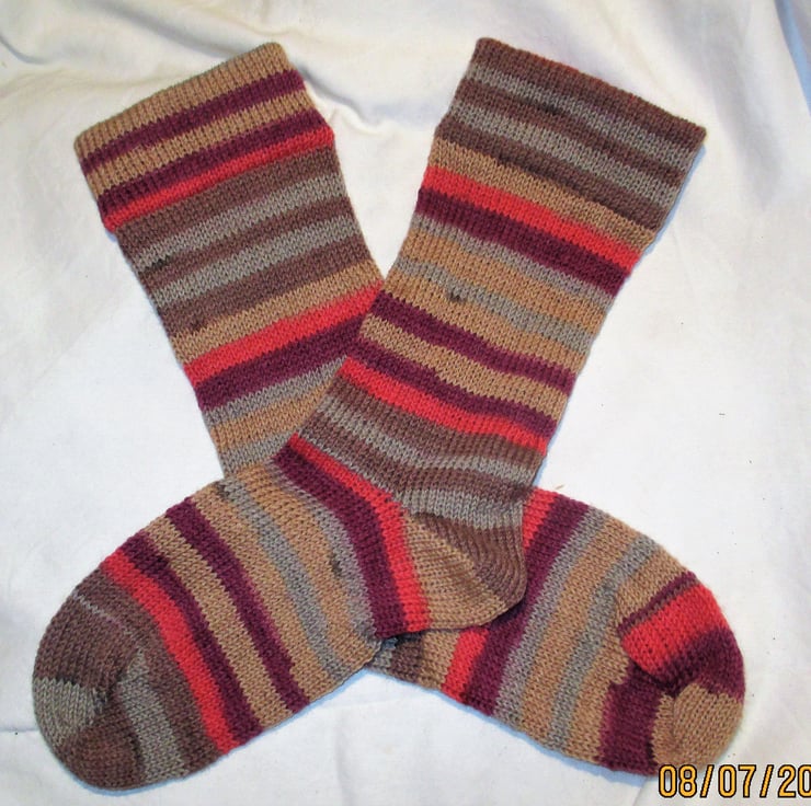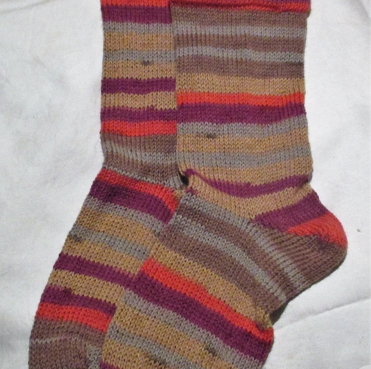 I started making socks as i found it hard to find good quality socks with no seams in the toe. The first pair was fro a vintage pattern from my Granny and when everyone in the family saw them, they all wanted a pair and my market got bigger and bigger. Now when I pop to the shop in the village, I look down at everyone's feet and invariable I will see a pair of socks that I have made. A quality sock from fun yarn !