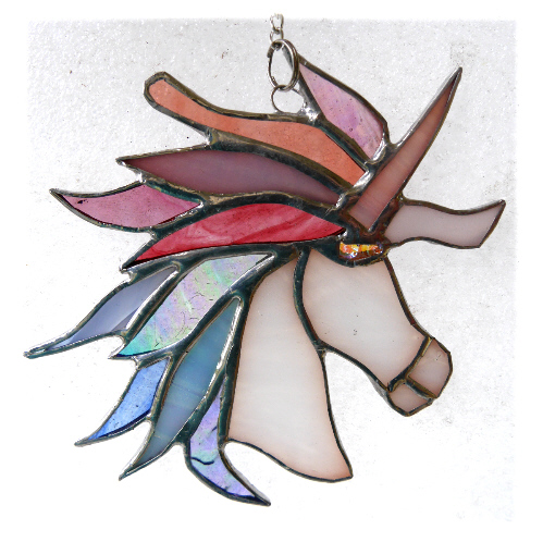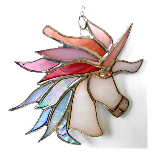 This is a stained glass suncatcher made using the Tiffany copper foil technique.